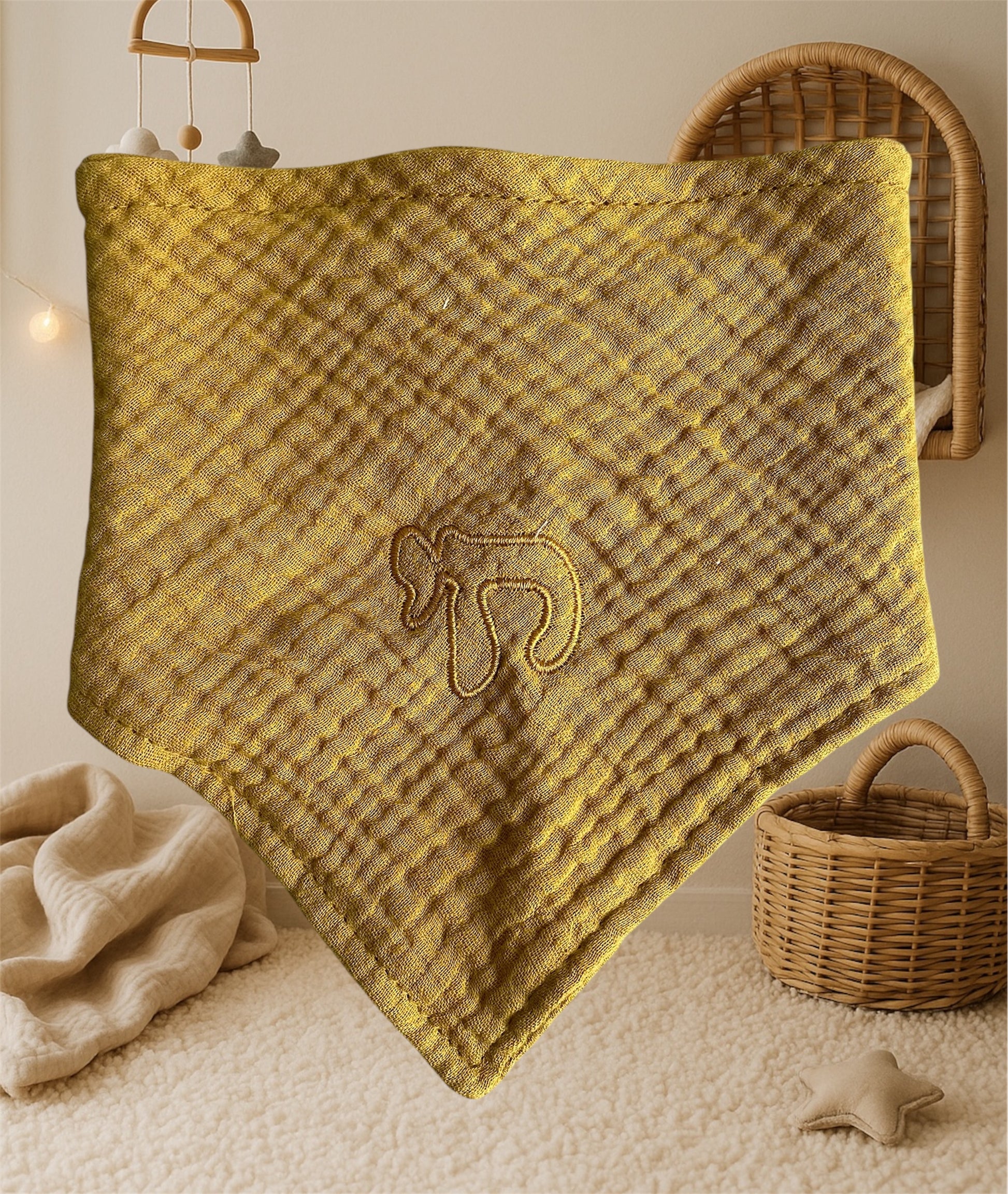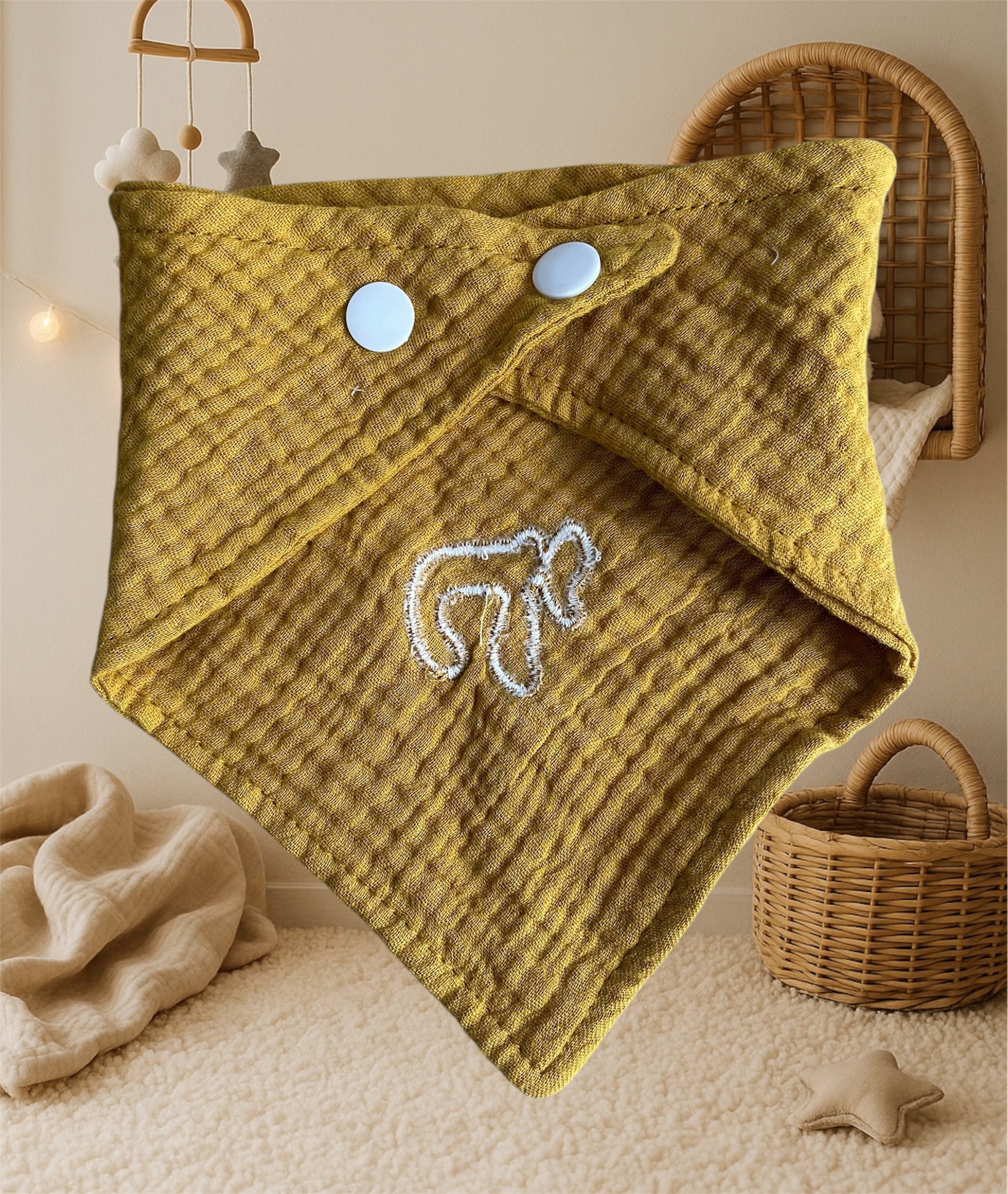 Douceur et symbolique réunies : un bavoir confortable, orné du Haï, pour accompagner chaque repas de bébé sous le signe de la vie et de la tendresse.